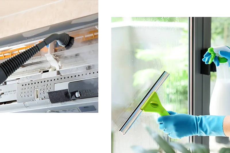 お客様一人ひとりに安心してご利用いただける清掃サービスを目標に、静岡市を中心に県内における清掃サービスを提供しております。毎年多くのご依頼をいただくなかで、一つひとつの案件に真摯に向き合い、納得のいく価格と品質を追求してまいります。作業内容や清掃箇所、広さなどに関係なく、誠実で正直な対応に努めております。また、専門性の高いハウスクリーニングとエアコンクリーニングの技術を持つだけではなく、様々な会社様と提携することで、より多くの機種や汚れをケアできる体制によってコストも抑えます。